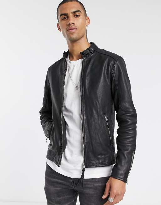 Allsaints Us Mens Cora Leather Jacket Jet Black