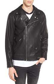 Obey Rapture Trim Fit Layered Faux Leather Jacket Nordstrom Leather Jacket Men Leather Jacket Hoodie Leather Jacket